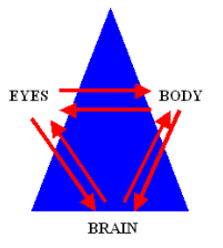 Peter’s method of derivation was particularly of interest here. He incorporated the fundamental links that connect vision and posture by associating the “thought” of a structure within the eye to his bodily response to that “thought”. Peter’s work went on say that inhibiting an unconscious thought which corresponded to a specific area of his eye, and then consciously directing this to a certain area of his eye had an effect on the body. How did the brain monitor that conversation?